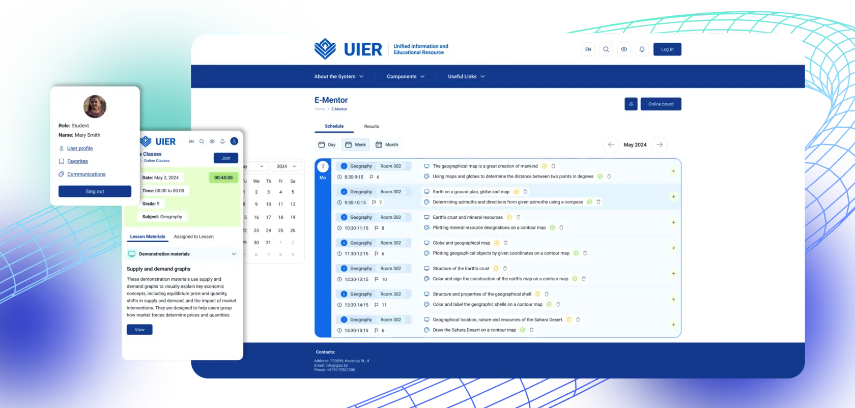 We developed a student knowledge base, lesson creation tools, and modules for tests, simulators, and viewing materials, all integrated with educational organizations’ business process systems.