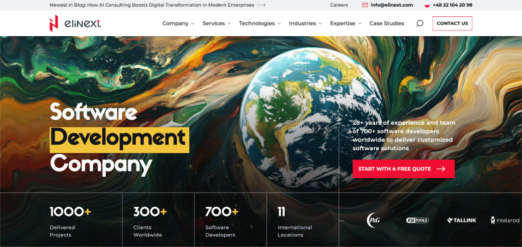 Elinext is a long-established development company from Poland with experience across custom software and enterprise systems. Web development is part of a broader technical offering rather than a standalone specialty.