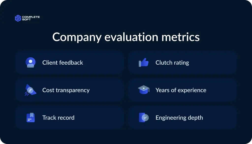 - Hourly rate. This factor was considered to understand how companies position themselves and what kind of clients they typically work with. The goal was not to rank cheaper companies higher, but to assess whether pricing aligns with experience, quality, and delivered value.