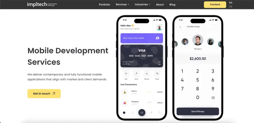 Impltech works with clients across fintech, healthcare, real estate, retail, and telecommunications. Its team develops both native and cross-platform applications, along with backend systems and web dashboards that support mobile products.
